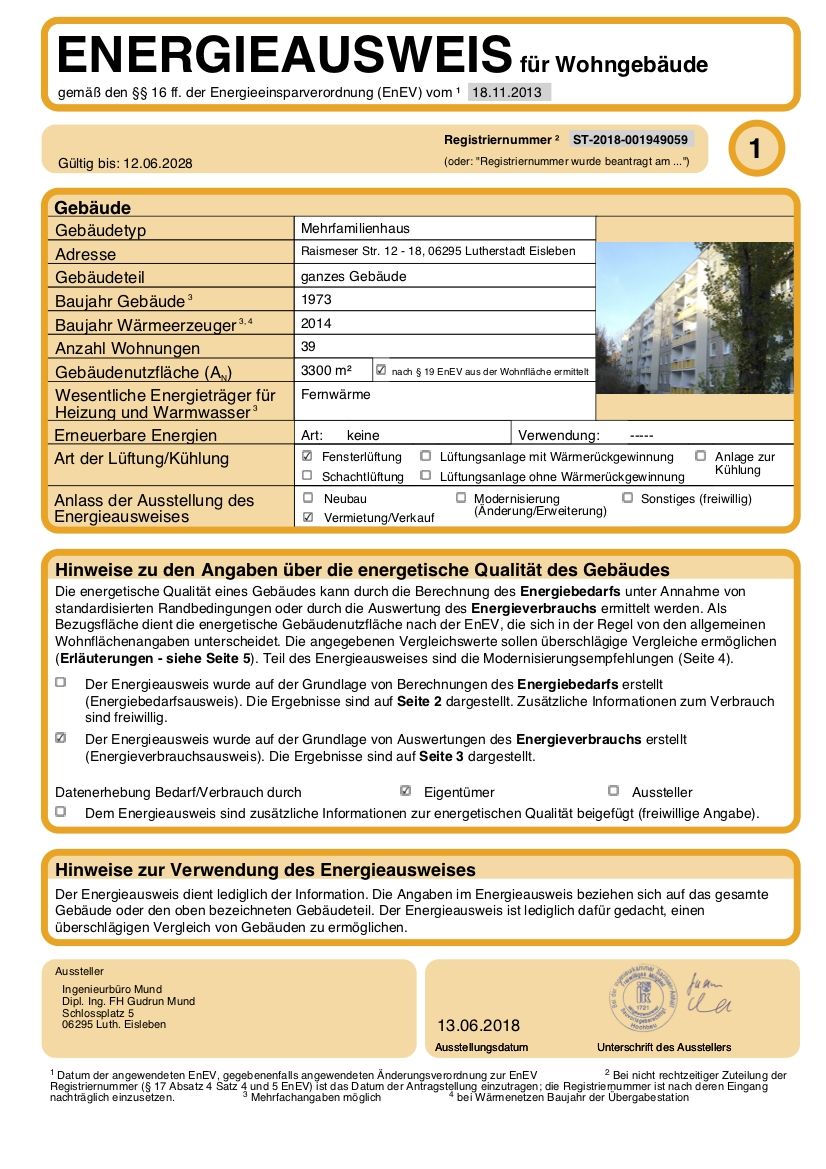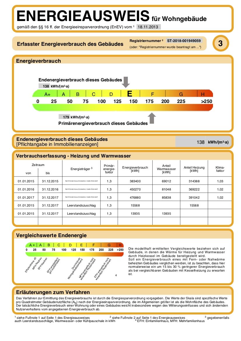 Energiekennwert | 138 kWh/(m²a) Energieverbrauchskennwert |