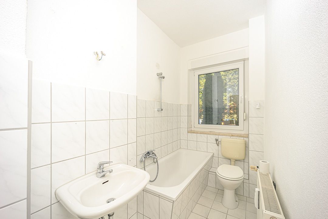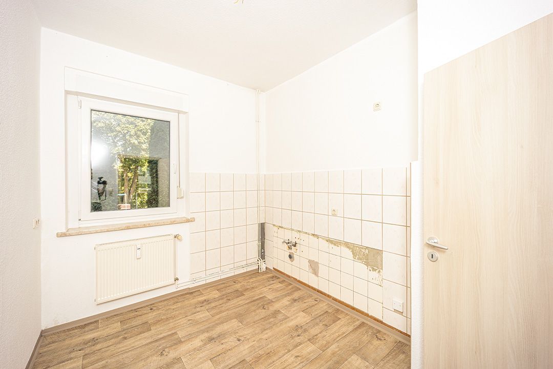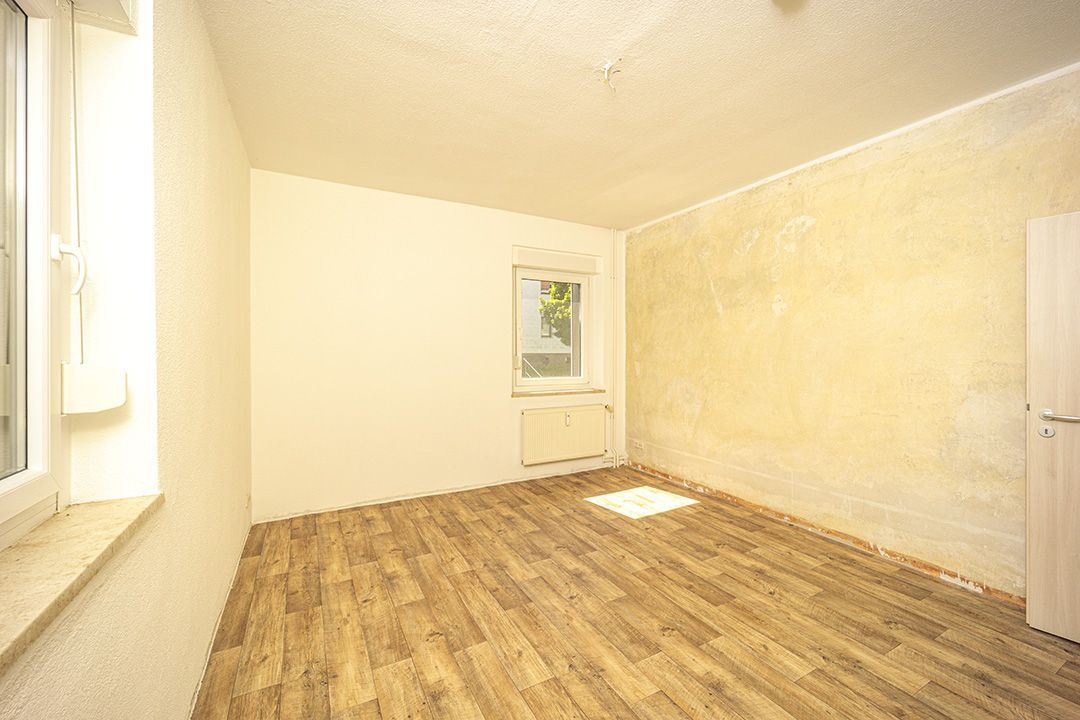 In der Bergmannsallee 11 kann im Erdgeschoss diese gemütliche 3-Raumwohnung angemietet werden. Die Decken, die Küche und der Flur sind bereits mit weißer Raufasertapete tapeziert. Die Wände im Wohn- und in den Schlafbereichen können nach den eigenen Vorstellungen tapeziert werden. Das Bad ist mit einer Wanne und einem Fenster ausgestattet. Die Küche ist separat und verfügt über ein Fenster. Hier wohnen Sie ruhig, sind schnell am Bahnhof und mit dem Bus auch schnell im 3-E-Center. Der Lidl sowie das Kaufland sind fußläufig erreichbar. Eine Kita und Schulen befinden sich ebenfalls in der Nähe. Bei Interesse vereinbaren Sie mit uns einen Termin. Wir freuen uns auf Sie.