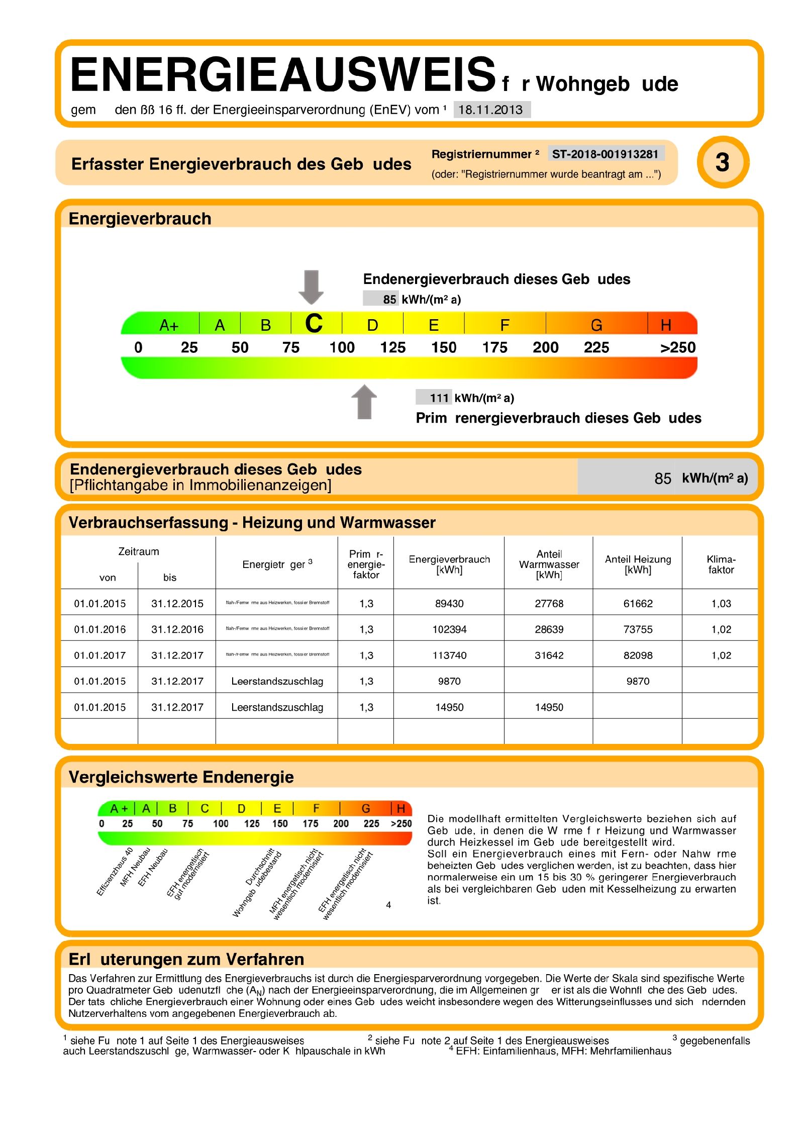 | Energiekennwert | 85 kWh/(m²a) Energieverbrauchskennwert |