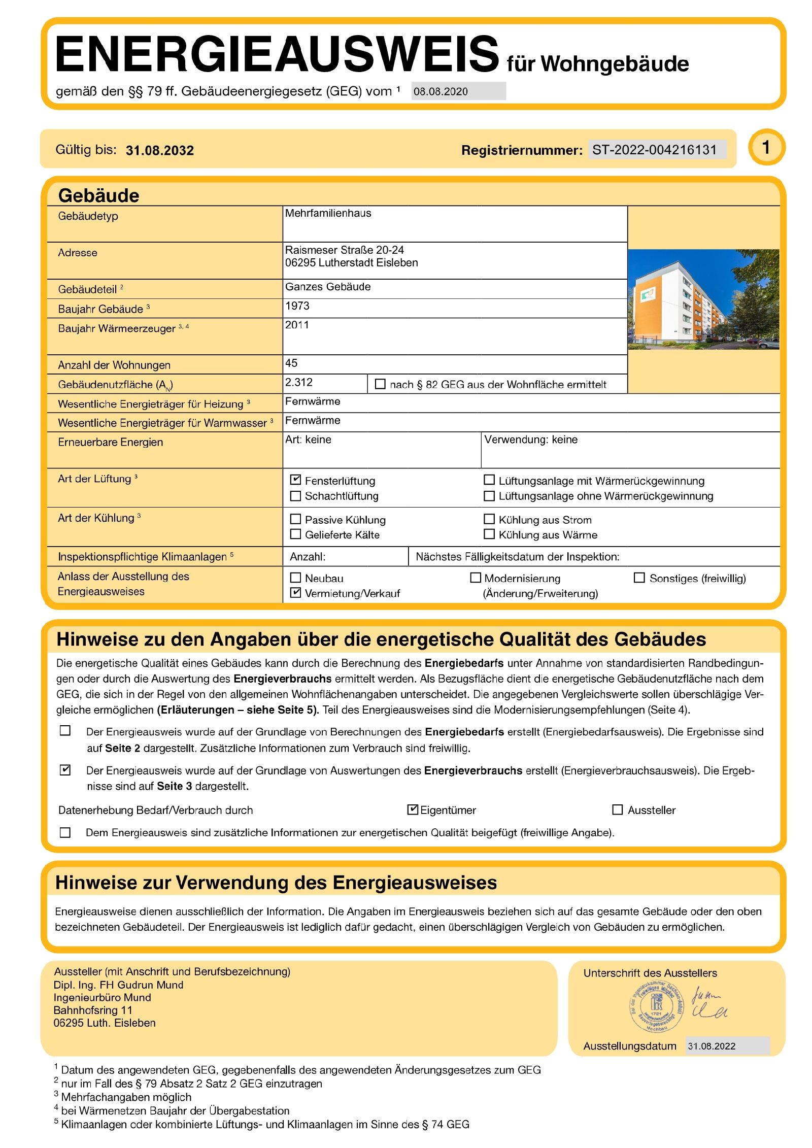 | Energieausweistyp | Verbrauchsausweis |