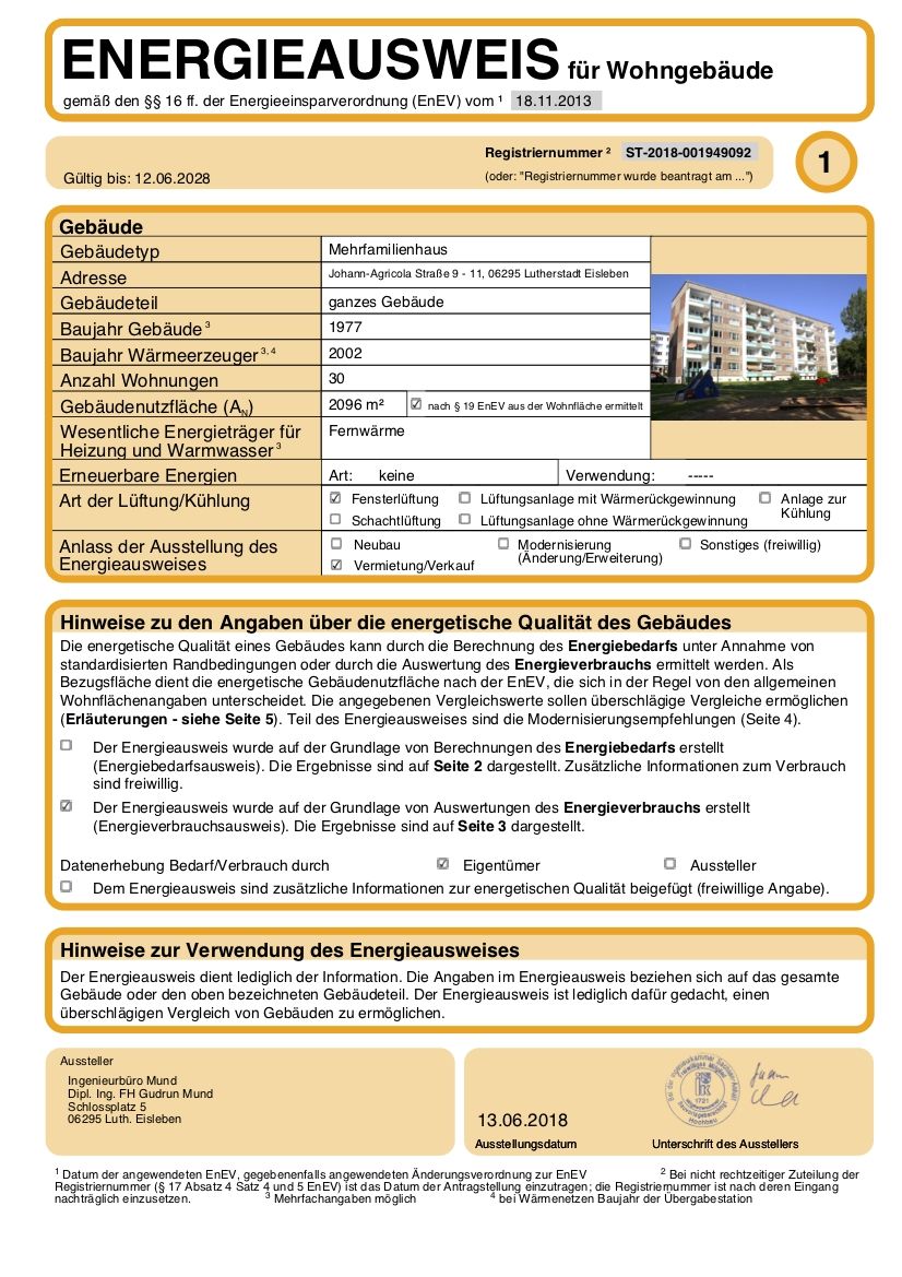 | Energiekennwert | 133 kWh/(m²a) Energieverbrauchskennwert |