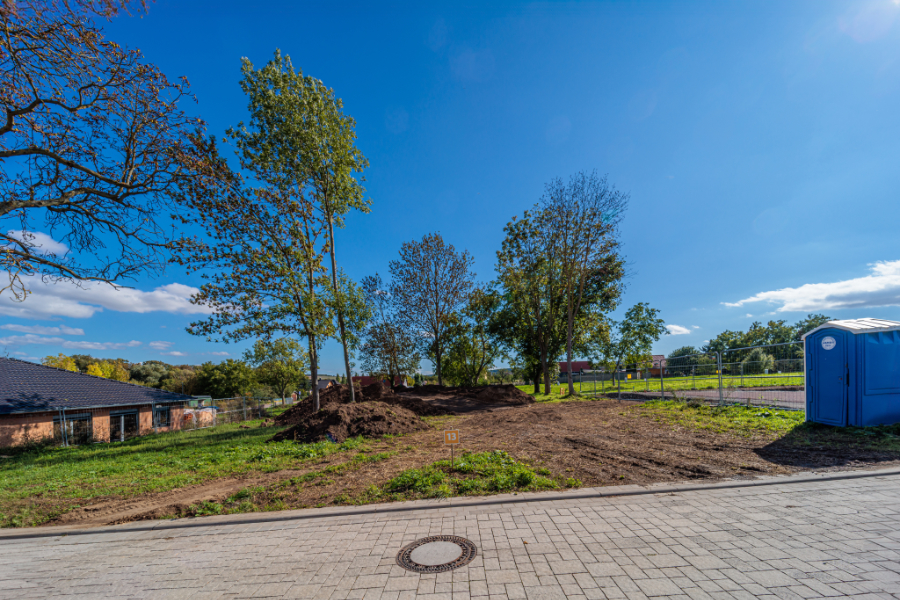 Bebauung ist von klassisch bis modern in (fast) allen Varianten möglich, der Bebauungsplan gestattet eine Bauweise bis 2,5 Geschosse. Die Grundstücke sind über die noch entstehende Anliegerstraße „Joachim-Herrmann-Ring“ zu erreichen (außer 21 und 22 über Hauptstraße/Hackebornstraße).
