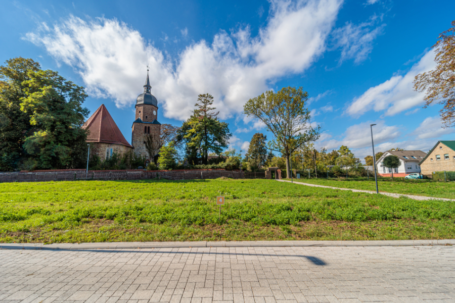 Bebauung ist von klassisch bis modern in (fast) allen Varianten möglich, der Bebauungsplan gestattet eine Bauweise bis 2,5 Geschosse. Die Grundstücke sind über die noch entstehende Anliegerstraße „Joachim-Herrmann-Ring“ zu erreichen (außer 21 und 22 über Hauptstraße/Hackebornstraße).