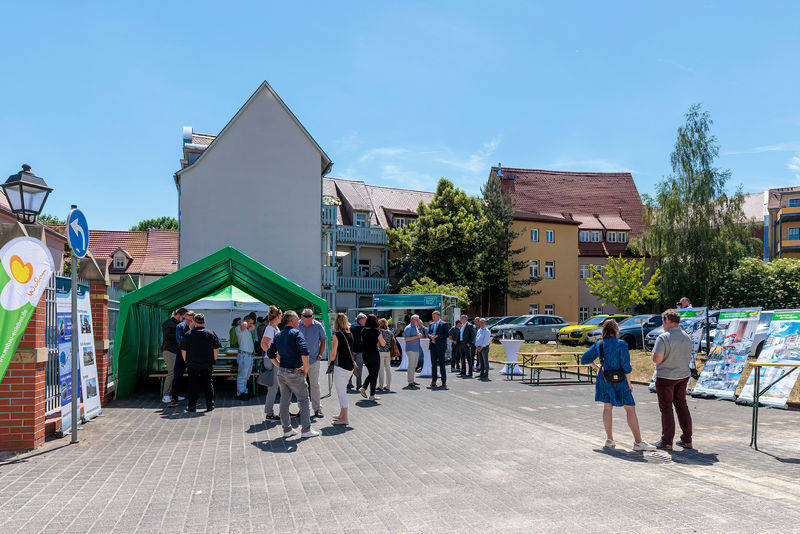 Am Mittwoch, den 15.06.2022 fand die feierliche Eröffnung des Neubaus in der Poststraße statt. Die geladenen Gäste, u.a. der Eisleber Bürgermeister Carsten Staub, die Oberbürgermeisterin a.D. Frau Fischer, Vertreter der ENEX Gruppe, der Sparkassen, das Architekturbüro Herbst sowie zahlreiche Vertreter des Handwerks und beteiligten Unternehmen wurden ab 13 Uhr feierlich durch den Geschäftsführer der Wobau Eisleben Marc Reichardt begrüßt. Die Unternehmensgruppe Wend, welche einen Großteil der Poststraße 2a angemietet hat, sorgte mit Ihrem Café Markt 33 für das leibliche Wohl. Bei schönsten Sonnenschein konnten sich die beteiligten ein eigenes Bild vom fertiggestellten Bauwerk machen. Es war eine gelungene Veranstaltung. Vielen Dank an alle Beteiligten und Gäste.