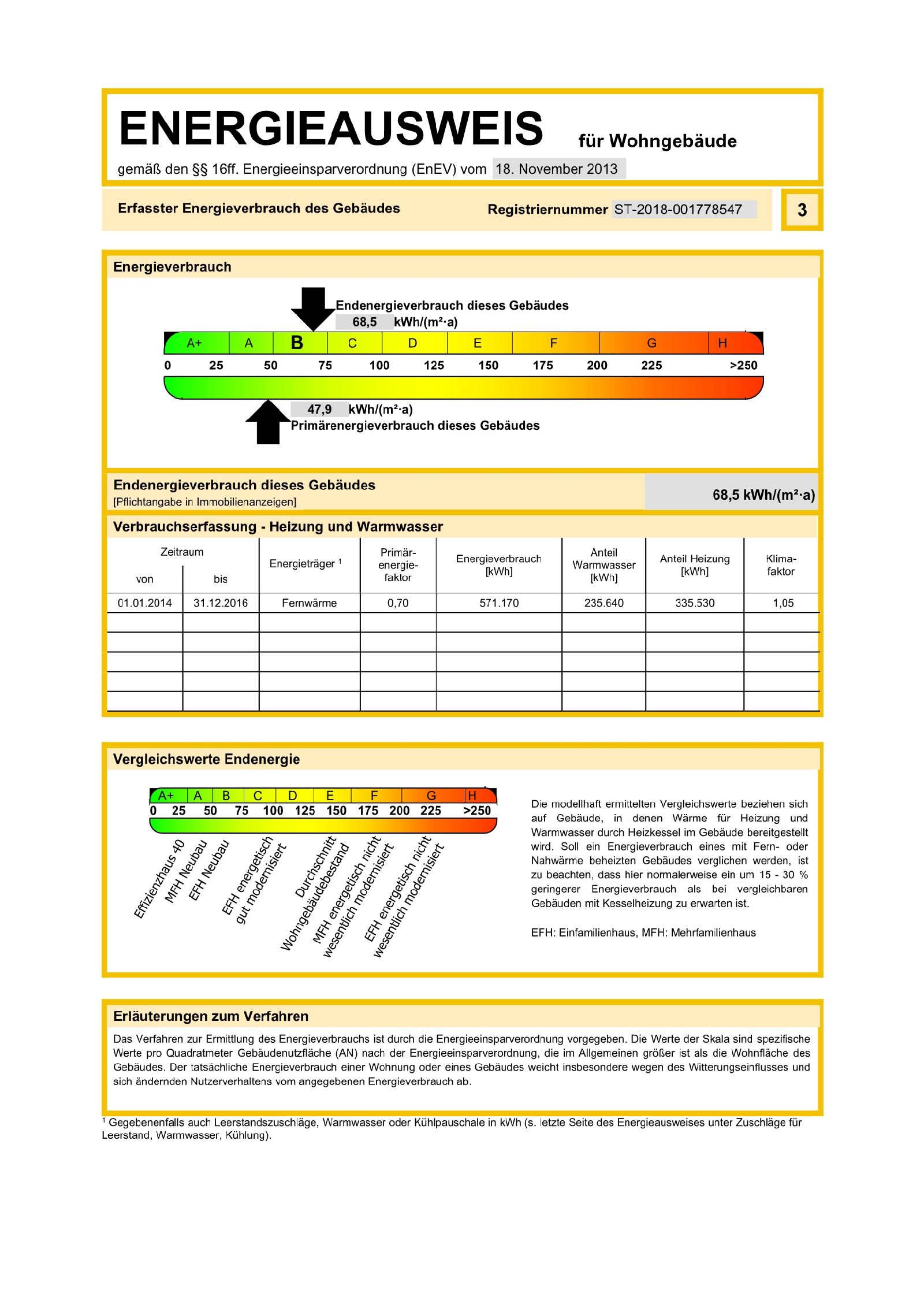 | Energiekennwert | 68,5 kWh/(m²a) Energieverbrauchskennwert |
