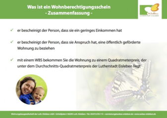 Der Wohnberechtigungsschein Die Wohnungssuche ist schwer geworden. Wer wenig verdient findet meist keine schöne Wohnung in einer guten Lage. Die Wobau beabsichtigt über 50 Wohnungen zu sanieren, die nur an einen Personenkreis mit Anspruch auf einen WBS vermietet werden sollen. Was ist denn überhaupt ein Wohnberechtigungsschein? Ein WBS bescheinigt der Person, dass sie ein geringes Einkommen hat und somit Anspruch hat, eine öffentlich geförderte Wohnung zu beziehen. Die Sanierung der …