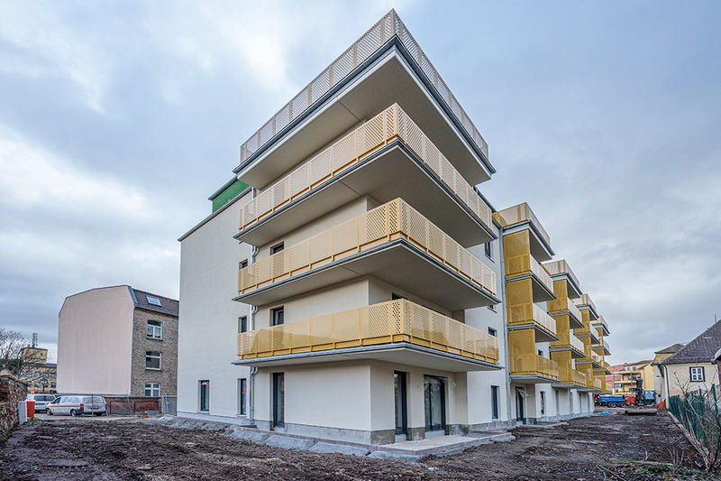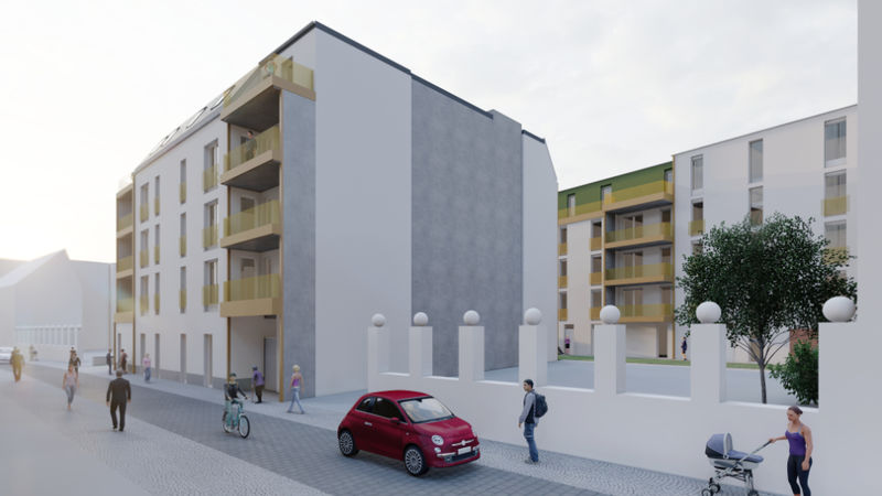 In dem Haus im hinteren Bereich entstehen moderne 2- bis 4-Raumwohnungen mit Balkonen und/oder Dachterrassen.