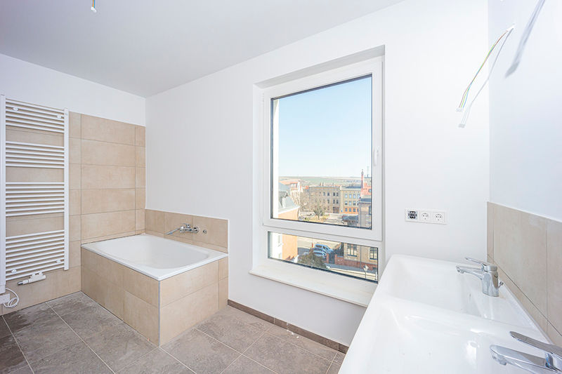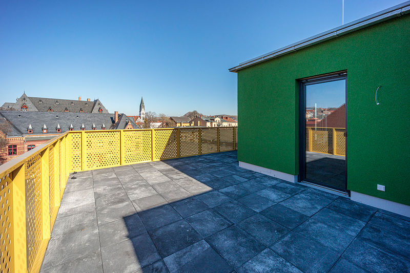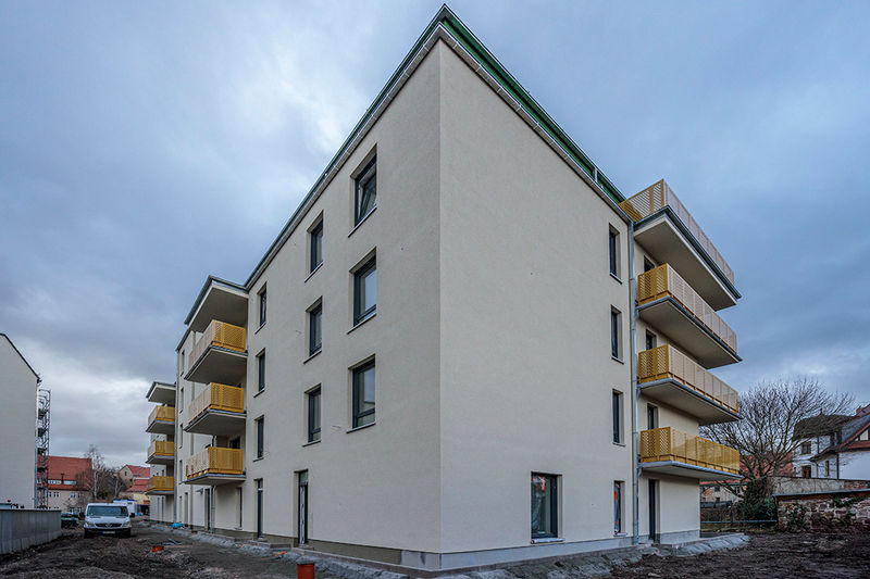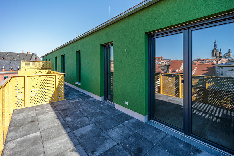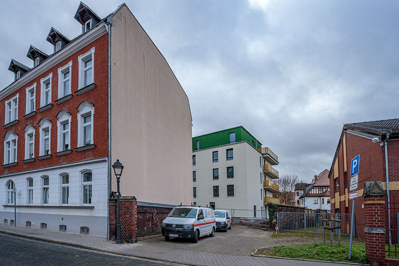 In der Poststraße entstehen zwei moderne Gebäude mit hochwertigen Wohnungen. Der vordere Bereich wird hauptsächlich als Gewerbe vermietet. Im Obergeschoss findet man hier aber auch noch tolle Wohnungen mit Dachterrasse und einem herrlichen Blick über Eisleben.