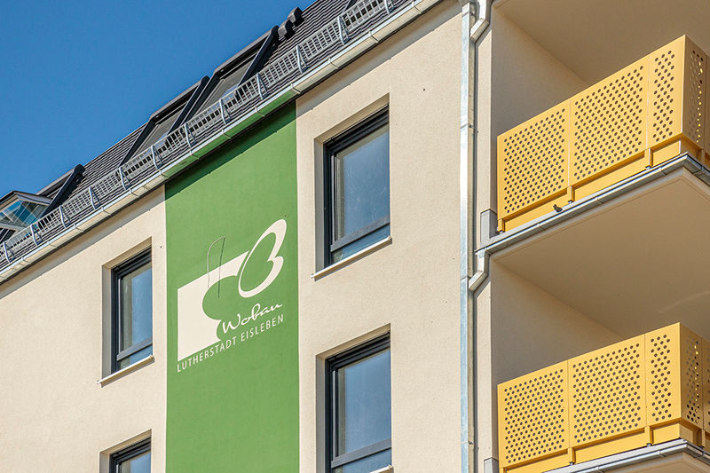 Am vorderen Haus findet man unser Wobau-Logo auf der Giebelseite.