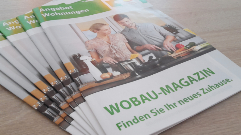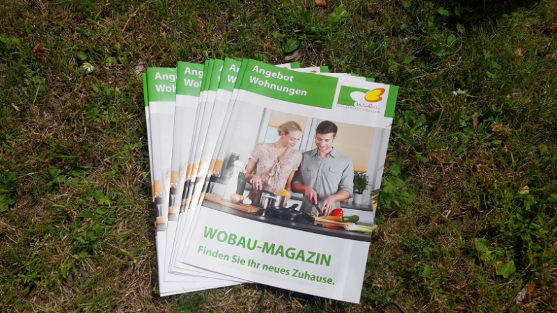 Gerade auf Wohnungssuche? Unser neues Wobau-Magazin ist da, vollgepackt mit Wohnungsangeboten. Vor unserem Schaukasten am Schloßplatz können Sie sich jetzt auch das Wobau-Magazin mitnehmen.