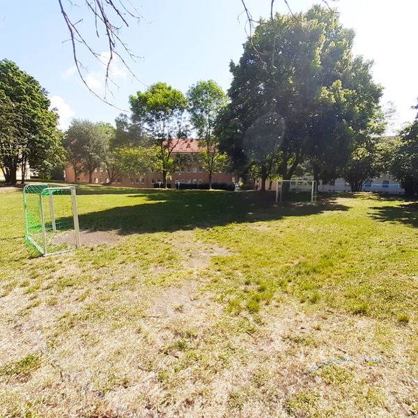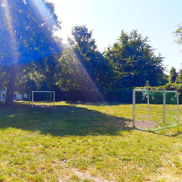 In der Wilhelm-Piecksiedlung hat die Wobau auf einer großen Grünfläche hinter der Von-Veltheim-Straße einen kleinen Platz mit Toren ausgestattet. Hier können unsere kleinen Mieter mit ihren Freunden nach Herzenslust kicken und toben.