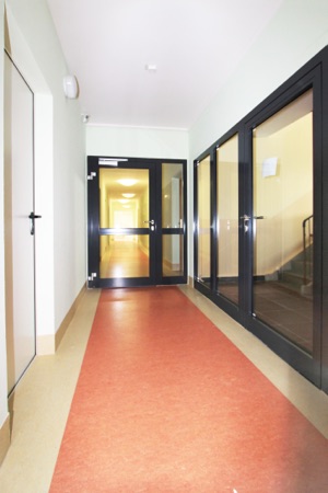 Um den Anforderungen des Brandschutzes gerecht zu werden, erfolgte im Zuge der umfänglich durchgeführten Sanierungsarbeiten der Einbau von Rauchschutztüren am Ende der Zwischenflure der Einraumblöcke Kurt-Wein-Straße 9 sowie Karl-Wünschmann-Straße 12. Dies war erforderlich, umsicherstellen zu können, dass auf jedem Flur eine Möglichkeit für die Bewohner besteht, im Fall eines Brandes im Treppenhaus einen brandrauchfreien Bereich aufsuchen zu können, noch bevor die Feuerwehr mit der Einleitung von Rettungsmaßnahmen beginnen kann. Somit konnte gleichzeitig vermieden werden, auf der zwischen den beiden Häuseren befindlichen Grünanlagen groß angelegte Feuerwehrrettungswege anzulegen. Stattdessen kann in den Folgejahren hier ebenefalls eine optisch ansprechende Gestaltung erfolgen.