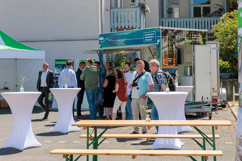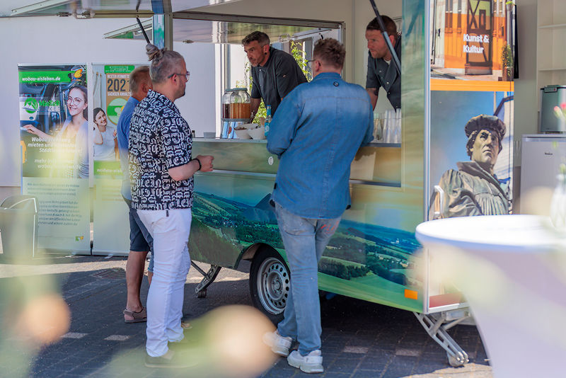 Am Mittwoch, den 15.06.2022 fand die feierliche Eröffnung des Neubaus in der Poststraße statt. Die geladenen Gäste, u.a. der Eisleber Bürgermeister Carsten Staub, die Oberbürgermeisterin a.D. Frau Fischer, Vertreter der ENEX Gruppe, der Sparkassen, das Architekturbüro Herbst sowie zahlreiche Vertreter des Handwerks und beteiligten Unternehmen wurden ab 13 Uhr feierlich durch den Geschäftsführer der Wobau Eisleben Marc Reichardt begrüßt. Die Unternehmensgruppe Wend, welche einen Großteil der Poststraße 2a angemietet hat, sorgte mit Ihrem Café Markt 33 für das leibliche Wohl. Bei schönsten Sonnenschein konnten sich die beteiligten ein eigenes Bild vom fertiggestellten Bauwerk machen. Es war eine gelungene Veranstaltung. Vielen Dank an alle Beteiligten und Gäste.