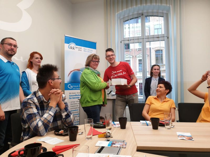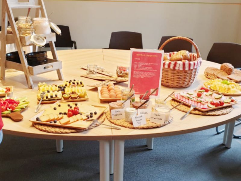 Unsere Kollegin Frau Dölz hat uns bei Radio SAW zum Gesunden Frühstück angemeldet und gewonnen. Heute war also der große Tag. Radio SAW kam vorbei und brachte allerhand leckere Frühstücksachen mit. Neben Körnerbrot und Körnerbrötchen, tollem Rührei, Obst, Gemüse gab es auch leckere Säfte und gesundes Wasser.