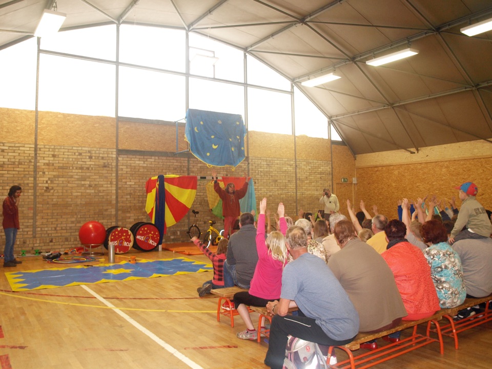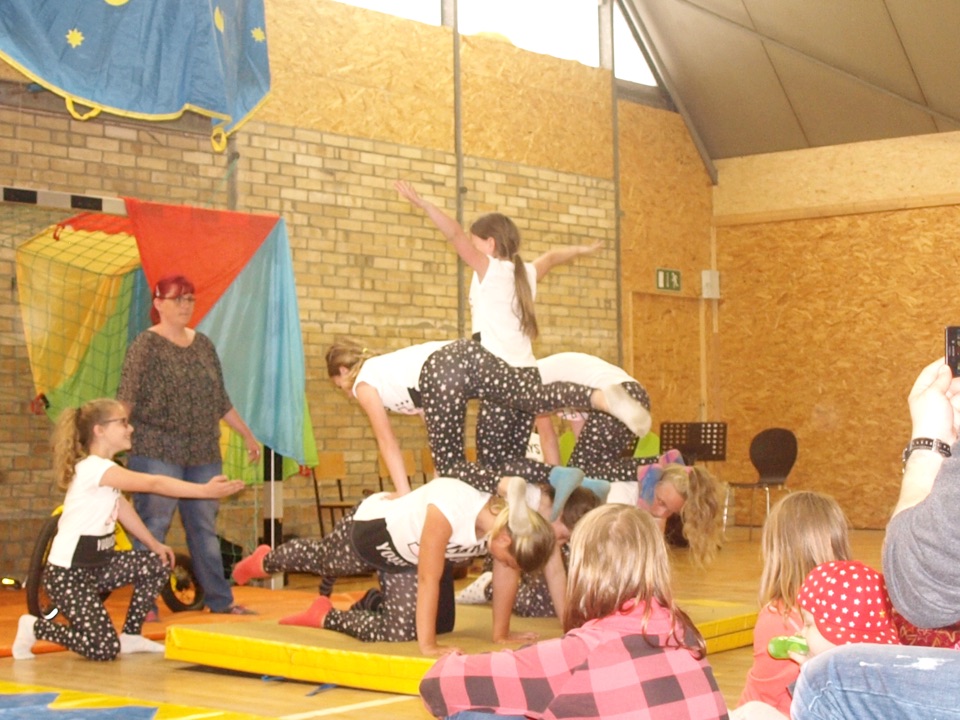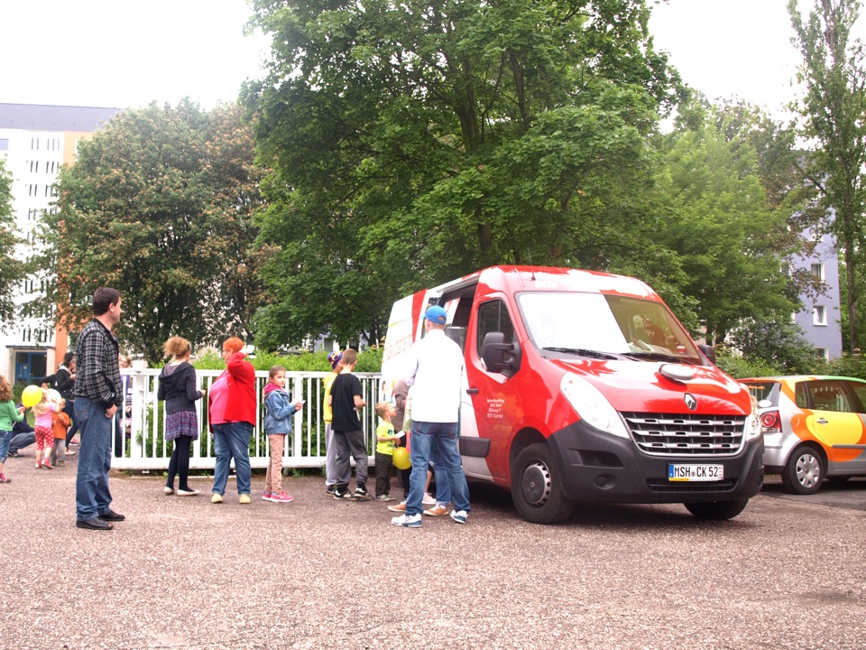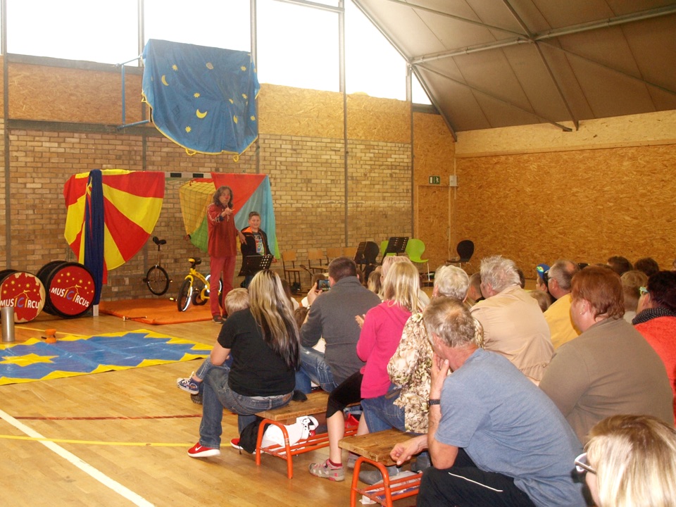 Nach der Eröffnungsrede durch Herrn Erdmenger, Vermietungsleiter der Wobau und Frau Skerka-Schmelzer, Streetworkerin bei der Zeche, startete das Programm. Zuerst spielte die Gitarren-Schule der Zeche ein paar aktuelle Songs, danach zeigte uns die Akrobatik-Gruppe ihr Können. Im Anschluss animierte der Bergmönch mit seinen Mitmachzirkus die Kinder. Alles durfte selbst ausprobiert werden: Fahrrad, Hüpfbälle, Kegel...