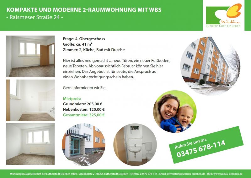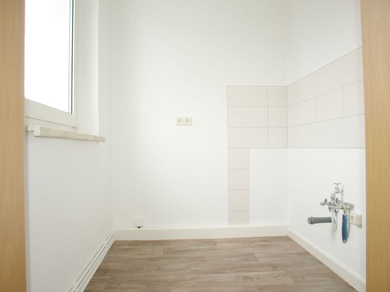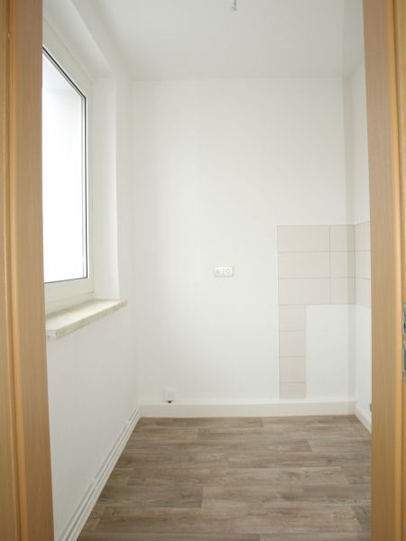 Hier ist alles neu gemacht ... neue Türen, ein neuer Fußboden, neue Tapeten und ein neues Bad mit Dusche. Ab voraussichtlich Februar können Sie hier einziehen. Das Angebot ist für Leute, die Anspruch auf einen Wohnberechtigungsschein haben.