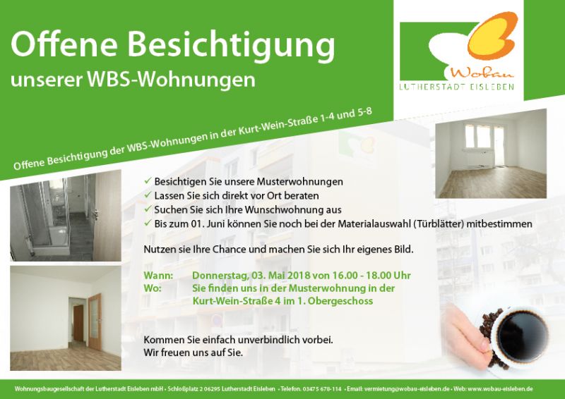 Wo: Sie finden uns in der Kurt-Wein-Straße 4 im 1.OG in unserer Musterwohnung