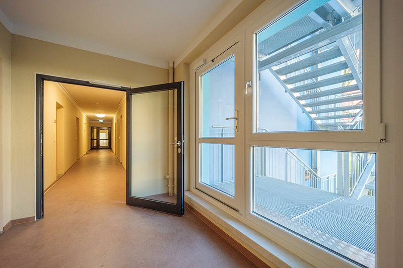 Im Flurbereich wurden die Fenster durch Paniktüren ersetzt. So können wir für die jetzigen und zukünftigen Mieter eine noch höhere Sicherheit gewährleisten.