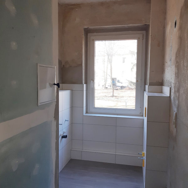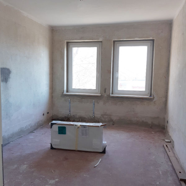 In der Schillerstraße 38 werden derzeit Sanierungsarbeiten an den Wohnungen in der Schillerstraße 38 durchgeführt. Da alle Wohnungen grundhaft saniert werden mussten, haben wir uns dazu entschlossen auch hier Grundrissänderungen durchzuführen. Es entstehen drei geräumige 4-Raumwohnungen mit ca. 80 m² und eine praktische 1-Raumwohnung. Hier wohnen Familien ruhig und grün. Bis zum Bahnhof ist es nicht weit. Der Spielplatz ist gleich um die Ecke. Auch die Anbindung an den ÖPNV ist hervorragend, denn die Bushaltestelle ist nicht weit weg. Aktuell werden alle Wohnungen noch umgebaut. Ab ca. Mai können die ersten Wohnungen dann bezogen werden. Haben wir Ihr Interesse geweckt? Dann können Sie sich gern für eine Wohnung bewerben. Wir freuen uns auf Sie.