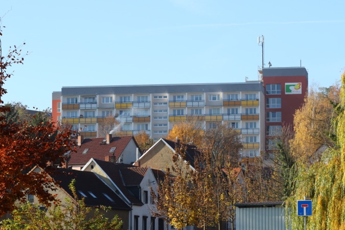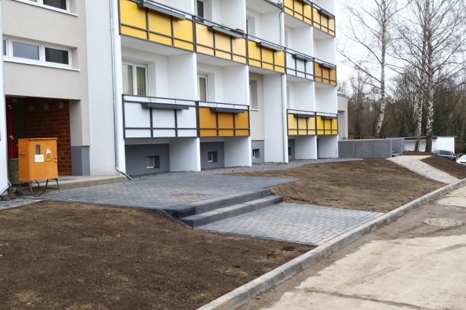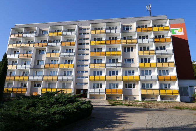Die im letzte Jahr begonnen Sanierung der Glumestraße 12 und der Johann-Agricola-Straße 6-8 wird im 1. Quartal 2016 fertig gestellt. Neben kleinen Restarbeiten im Sockelbereich sind die Fassaden und Balkonarbeiten abgeschlossen und die Außenanlagen können neu gestaltet werden. In diesem Zuge sind bereits neue PKW-Stellflächen entstanden.