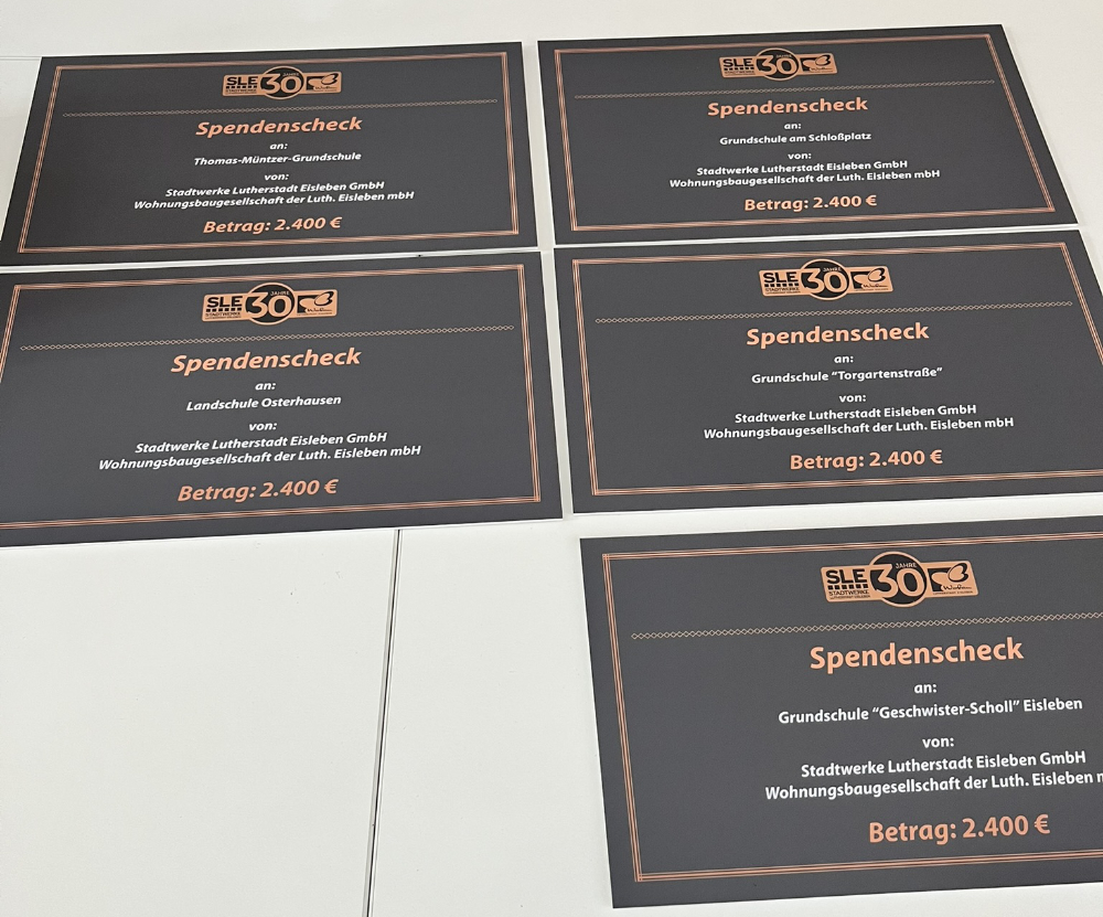 In diesem Jahr feierten die Wohnungsbaugesellschaft der Lutherstadt Eisleben mbH und die Stadtwerke Lutherstadt Eisleben GmbH ihr 30-jähriges Jubiläum. Bei der gemeinsamen Jubiläumsfeier im Theater Eisleben im Mai haben sich die Geburtstagskinder von Ihren Gästen gewünscht, anstellen von Geschenken ein paar Euro für die Eislebener Grundschulen zu spenden.