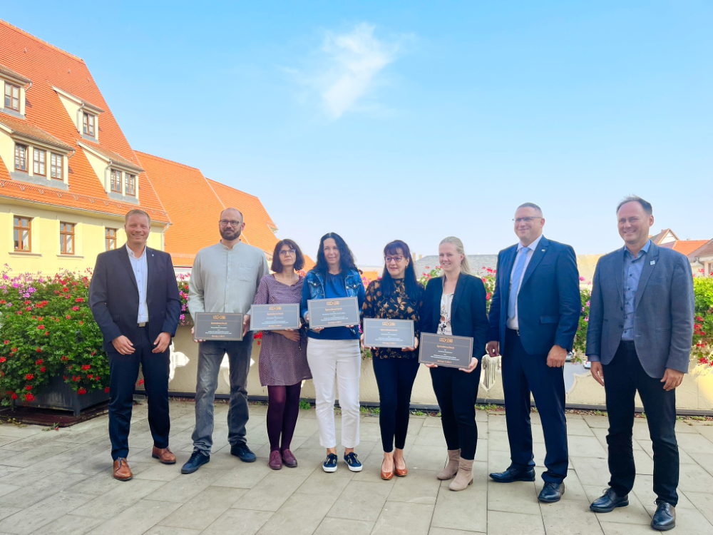 Am 18. September erfolgte dann die Scheckübergabe an die Grundschulen durch den Bürgermeister der Lutherstadt Eisleben, Herr Carsten Staub, dem Geschäftsführer der Wobau Herr Marc Reichardt und dem Geschäftsführer der SLE Herr Ronny Strebe. Alle 5 Grundschulen von Eisleben erhielten ein Scheck in Höhe von je 2.400 €.