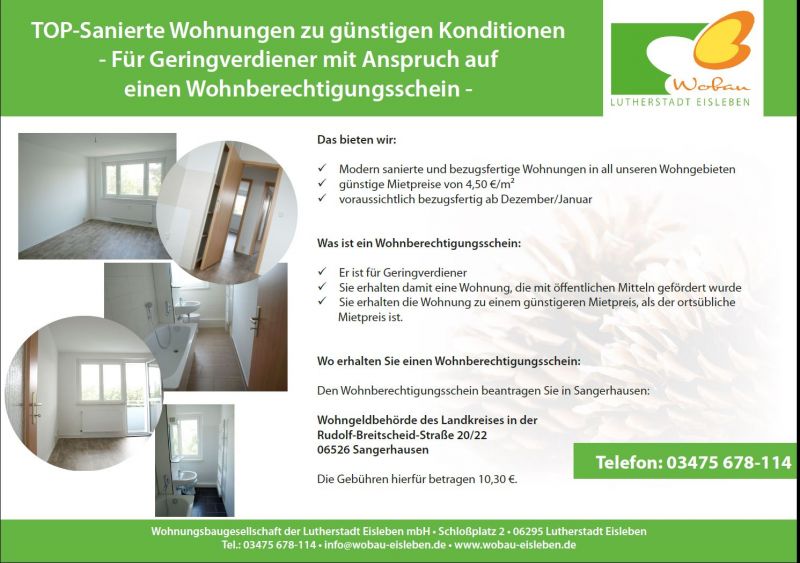 Den Wohnberechtigungsschein beantragen Sie in Sangerhausen: