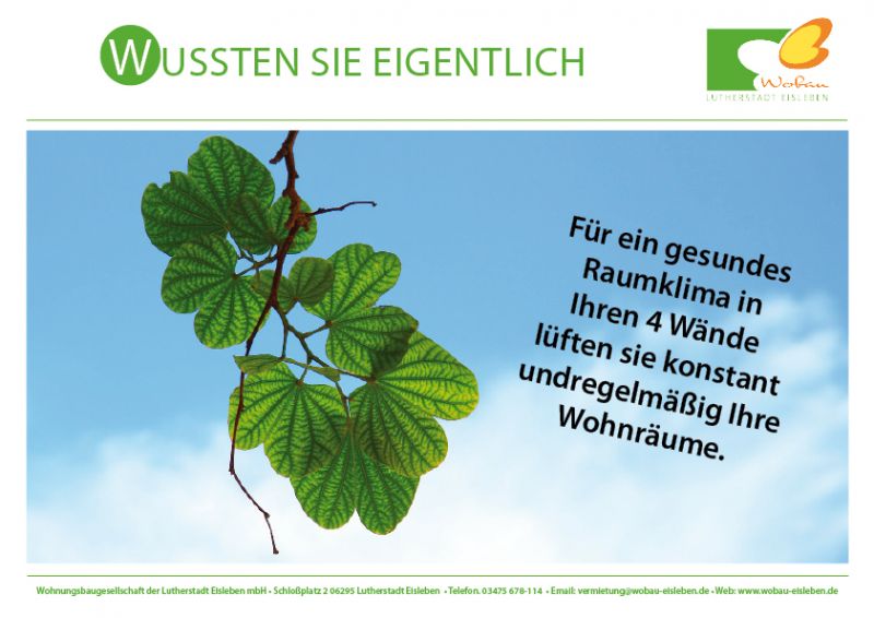 Für ein gesundes Raumklima in Ihren 4 Wände lüften sie konstant und regelmäßig Ihre Wohnräume.